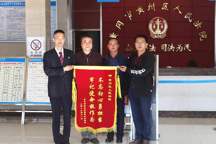 近日,黄州区法院堵城法庭审结5起物业服务合同纠纷案件。为表示感谢,11月8日上午,黄冈物业协会会长李树民、副会长闵绍周、秘书长成勇及黄冈俊晟物业服务有限公司法定代表人亲手将两面锦旗送到黄州区人民法院堵城法庭龙法官手中。